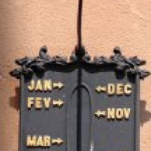 Cette courbe en forme de 8 est jalonnée sur son tracé en relief des mois de l'année. La zone dans laquelle apparaît la tache blanche du soleil au passage du méridien nous indique le mois dans lequel nous nous trouvons. En effet, la terre dans son mouvement de translation autour du soleil pivote sur son axe de rotation. Cela explique que durant l'hiver la position du soleil dans notre ciel est plus basse que durant l'été - ainsi les ombres s'allongent à partir du solstice d'été et se raccourcissent à partir du solstice d'hiver - ce que reflète notre méridienne