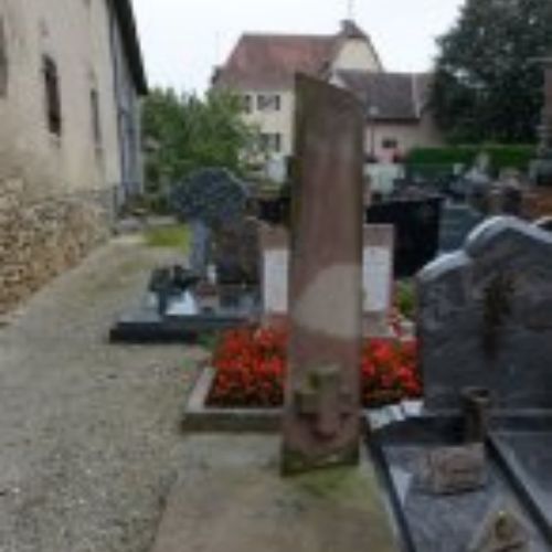 Nous avons installé dans ce jardin la pierre tombale de l'Abbé VETTER. Cette pierre tombale a été transférée de Feldkirch, lieu d'inhumation de l'abbé VETTER, à Urschenheim en 2014 suite à sa déshérence au cimetière de Feldkirch.