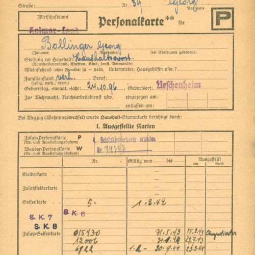 Dans les archives communales nous trouvons des registres de distribution des cartes de rationnement pour chaque famille du village.