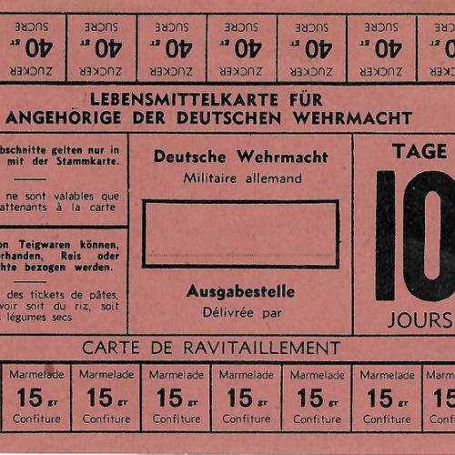 Le rationnement a débuté dès le début de la guerre. Il concernait les denrées alimentaires principalement mais également d’autres ressources à l’exemple de chaussures ou de pneus pour les bicyclettes. Mais dès la loi du 10 juillet 1938 sur l’organisation de la nation en temps de guerre le ton était donné à travers son article 46 qui stipulait que chaque ministre pouvait réglementer l’importation, l’exportation, la circulation, l’utilisation et la détention ainsi que la mise en vente de certaines ressources, les taxer et rationner leur consommation.