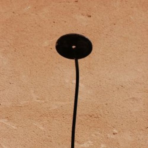 Notre méridienne est orientée plein sud. Elle se compose d'une plaque métallique surmontée d'une potence. Au sommet de la potence est fixé un disque percé en son centre d'un petit trou qui est appelé l'oeil du cadran. L'axe du cadran, est déterminé par une ligne fictive parallèle à l'axe du monde - c'est à dire l'axe des pôles de la terre - qui passe par cet œil.