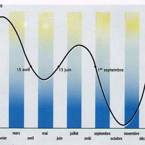 Il est 13 h 30 sur vos montres personnelles lorsque la tâche blanche se situe sur la courbe en forme de 8 selon les préceptes du temps moyen (voir plus haut).