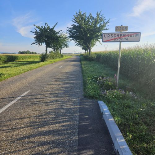A Urschenheim cette voie débute au niveau de la maison de Jean Pierre VOGEL, longe partiellement le village avant de bifurquer vers la droite à la sortie du village sur la route de Muntzenheim.