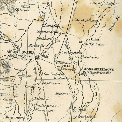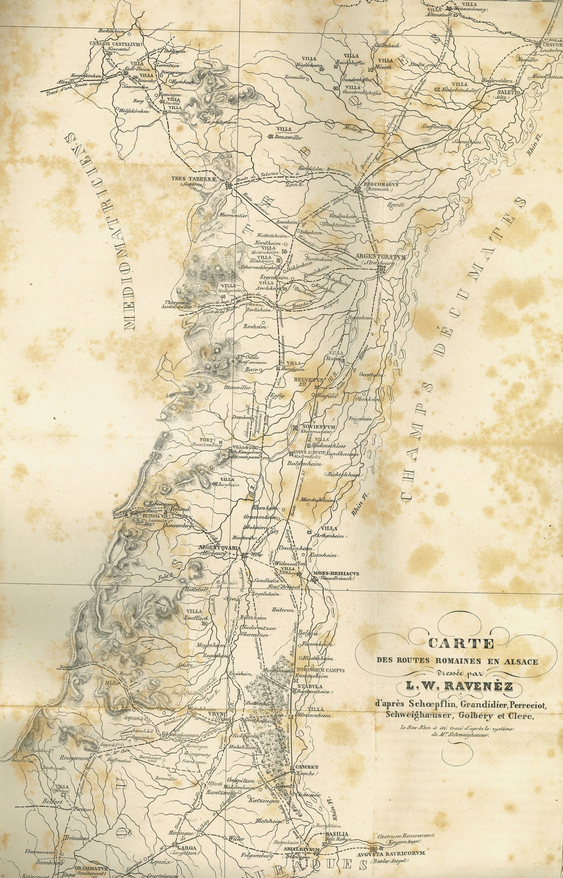 Sur une carte établie au XIXème siècle par LW RAVENEZ nous pouvons lire qu'une « grande voie militaire romaine qui existe encore presque entière » longe Urschenheim.