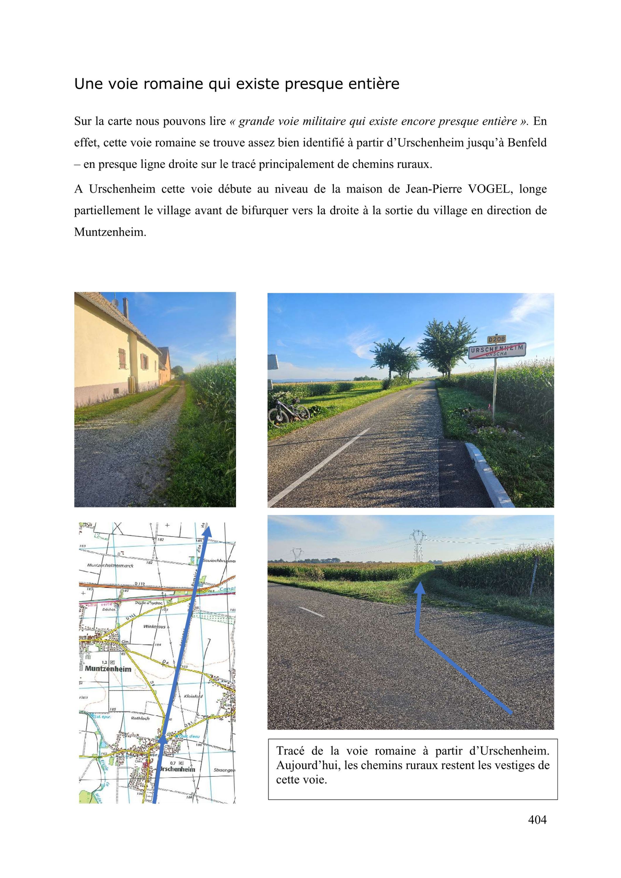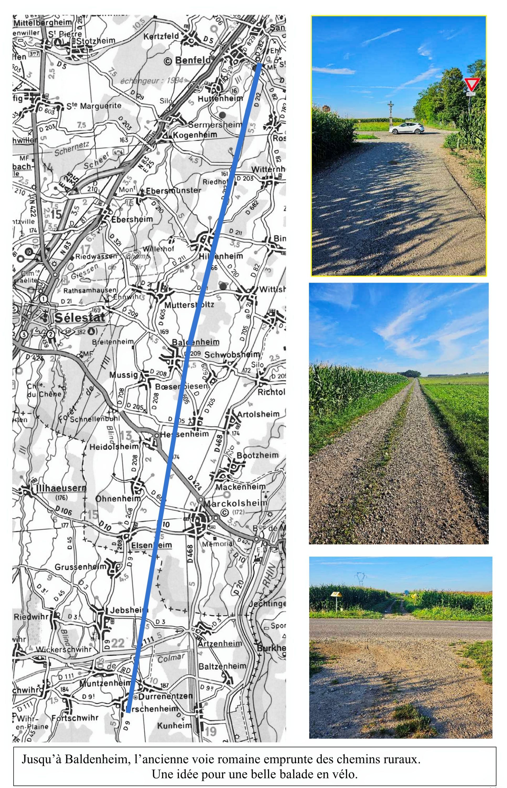 En effet, cette voie romaine se trouve assez bien identifié à partir d’Urschenheim jusqu’à Benfeld – en presque ligne droite sur le tracé principalement de chemins ruraux.