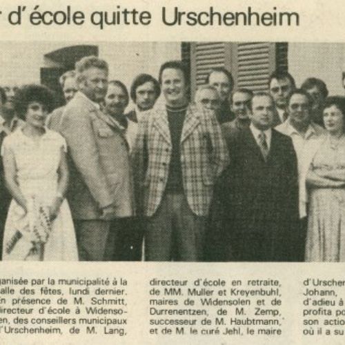 Au cours de ce même mois, M. René Lang, M. Haubtmann et M. René Schmitt respectivement directeur d'école à Durrenentzen, Urschenheim et Widensolen et Mme Schmitt, directrice de l'école Maternelle de Widensolen entreprennent une étude approfondie de la situation scolaire dans les trois villages. L'absence d'écoles maternelles à Durrenentzen et Urschenheim, la précarité des effectifs de celle de Widensolen, I'isolement des enseignants, la diversité des pédagogies pratiquées, les résultats scolaires, les structures et les équipements éducatifs dans chaque commune, ... sont examinés et militent en faveur d'une réorganisation des structures scolaires. Un regroupement pédagogique des écoles apporterait des solutions à bien des problèmes mis en évidence et permettrait une organisation scolaire et un enseigmement plus adaptés aux exigences et à l'évolution de la vie de notre temps.